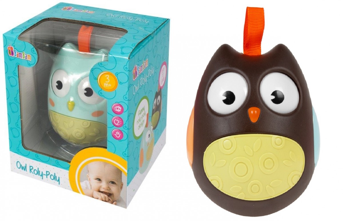 Wańka Wstańka Sówka zachwyci malucha kolorami i opływowym kształtem, zachęcając go do interaktywnej zabawy. Jak przystało na wańkę wastańkę zabawka chwieje się na boki, lecz nigdy nie przewraca. Po wychyleniu samoistnie odzyskuje równowagę i powraca do pionowej pozycji wyjściowej. Bujając i kołysając się na boki wydaje przy tym stłumione odgłosy uderzających się o siebie dzwoneczków poruszając przy tym oczami. Jednostajne chwianie się zachęca dziecko do aktywności, rozwoju zdolności manualnych, stymulując także jego wyobraźnię. Zabawka usprawnia rozwój słuchu, wzroku oraz zdolności motorycznych. Przeznaczona od 3 m-ca.