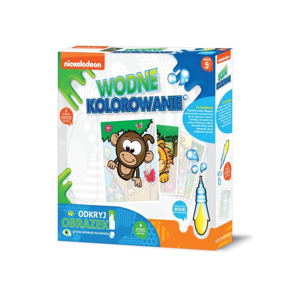 Poznaj sztukę wodnego rysowania! Napełnij wodny długopis wodą poprzez umieszczenie go w miseczce z cieczą i naciskaj, aż zapełni się wodą. Pokoloruj i odkryj obrazek! Kiedy woda wyparuje, obraz magicznie zniknie!