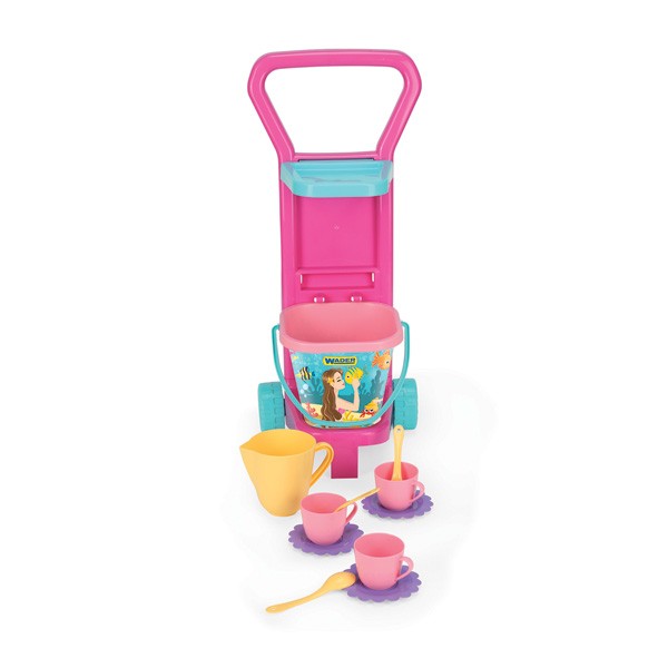 Wózek na kółkach umożliwia przemieszczanie się z zabawkami w łatwy sposób nawet dla najmłodszych dzieci. Wózek piknikowy wyposażony jest w wiaderko, 3 filiżanki, 3 talerzyki, 3 łyżeczki oraz dzbanek. Wszystkie elementy wykonane są z atestowanego, najwyższej jakości tworzywa sztucznego, więc są bezpieczne w kontakcie z żywnością. Produkt jest wytrzymały, a grafika wykonana jest metodą IML. Naklejka wtopiona w tworzywo sztuczne jest trwale połączona z zabawką, odporna na warunki atmosferyczne. Naczynia można myć w zmywarce i używać w mikrofalówce.