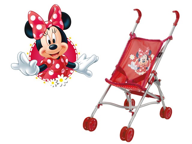 Wózek spacerówka Disney Myszka Minnie ze srebrnym stelażem.