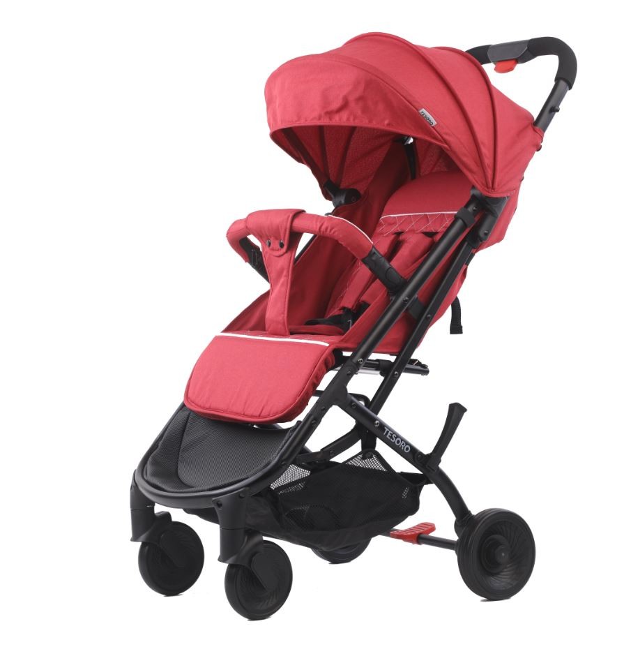 Wózek Tesoro model A9 stworzony został  dla rodziców i dzieci, którzy chętnie podróżują i poruszają się po mieście. Lekki i zwrotny - idealnie mieści się w każdym bagażniku samochodowym. Po złożeniu może być przechowywany na płasko, ponieważ stoi na kołach.Teleskopowa rączka do transportu ułatwia prowadzenie po złożeniu. Dodatkowym atutem jest długa budka oraz lekki kompaktowy stelaż oraz regulowany podnóżek. Uchwyt na napoje.