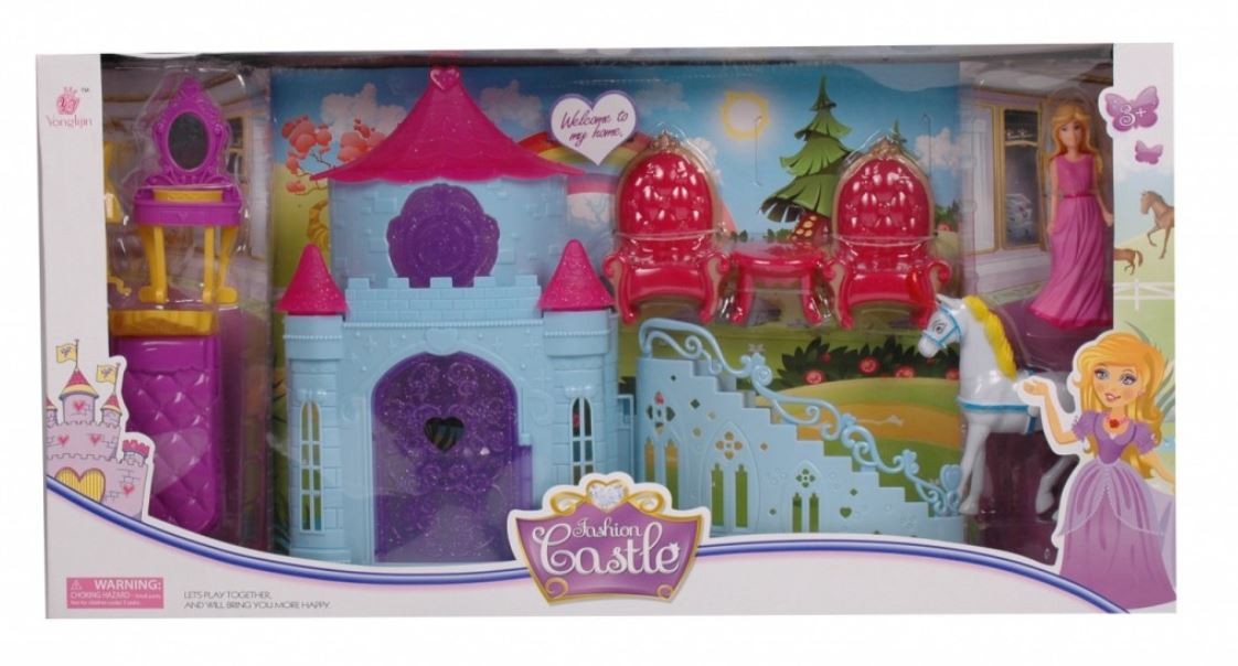Strona główna Figurki figurki Zamek z koniem Cena Netto: 45,76 zł. error_outline Produkt chwilowo niedostępny. Opis Półotwarty zamek z akcesoriamiW zestawie m.in. toaletka, fotele, konik, figurka księżniczki.Wysokość zamku to ok. 23 cm