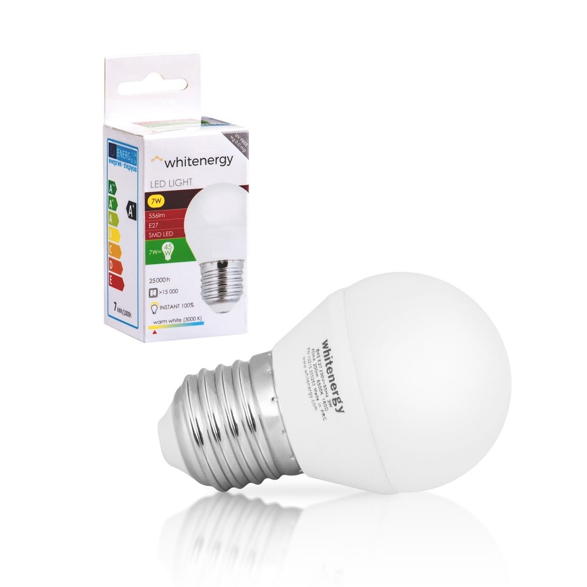 Ze względu na wysokiej jakości wykonanie układu elektronicznego, jak i zastosowanie energooszczędnej technologii diodowej SMD, żarówka LED pobiera co najmniej 8 razy mniejszą moc, w porównaniu do tradycyjnej żarówki, co sprawia, że wymiana wszystkich żarówek na źródła światła LED marki Whitenergy obniży Twoje rachunki za prąd.