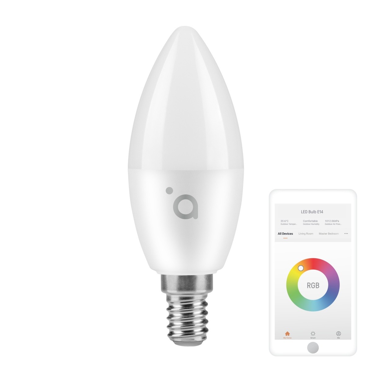 - Energooszczędna, inteligentna żarówka smart RGB WiFi sterowana i programowana z poziomu aplikacji na iOS i Android.