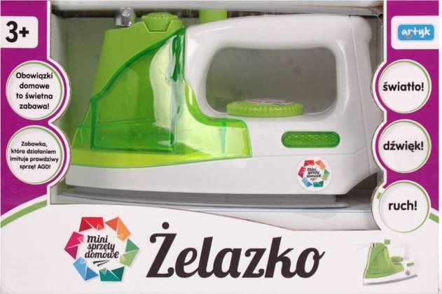 Ma spryskiwacz na wodę, światełko i wydaje dźwięki charakterystyczne dla prasowania z parą.