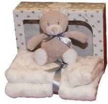 Zestaw New Baby to prześliczny prezent dla nowonarodzonego maluszka, mięciutki miś - przytulana oraz kocyk są wykonane z wyjątkowo mięciutkiego i milutkiego w dotyku materiału a do tego całość jest zapakowana w eleganckie pudełko.