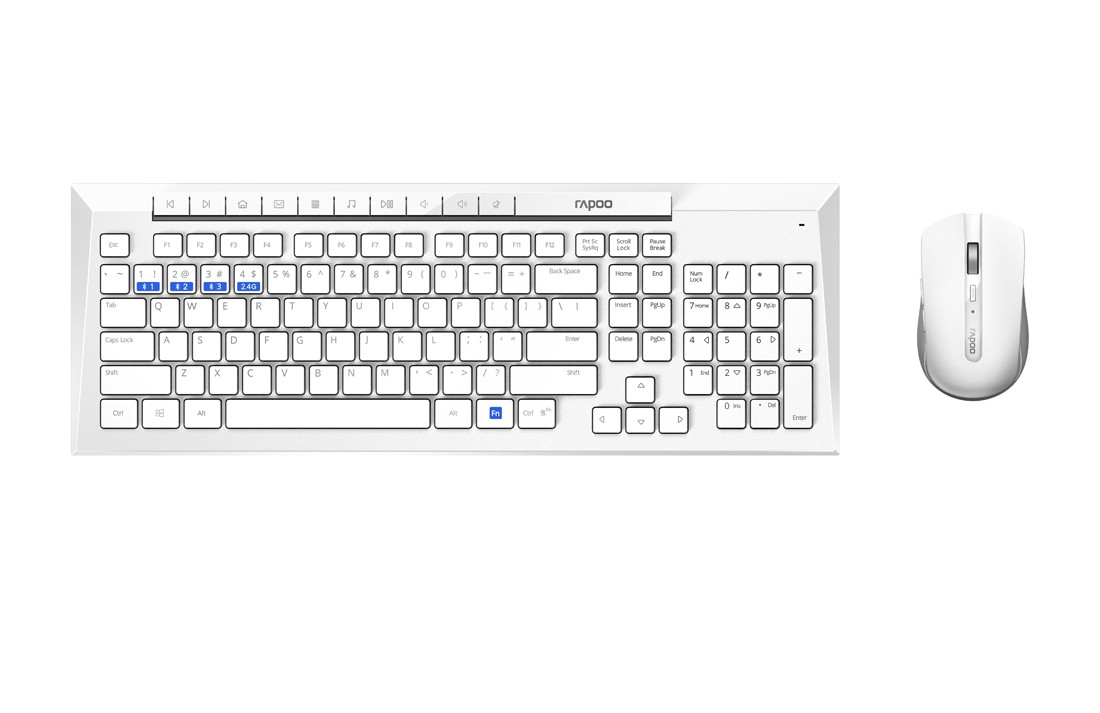 Zestaw został wyposażony w bezprzewodową technologię Rapoo multi-mode, która umożliwia łączność w kilku trybach: poprzez niezawodną transmisję bezprzewodową 2.4 GHz firmy Rapoo, za pomocą Bluetooth 3.0 lub Bluetooth 4.0 (Smart). Umożliwia to jednoczesne połączenie się z kilkoma urządzeniami i przełączanie się między nimi (parowanie automatyczne).