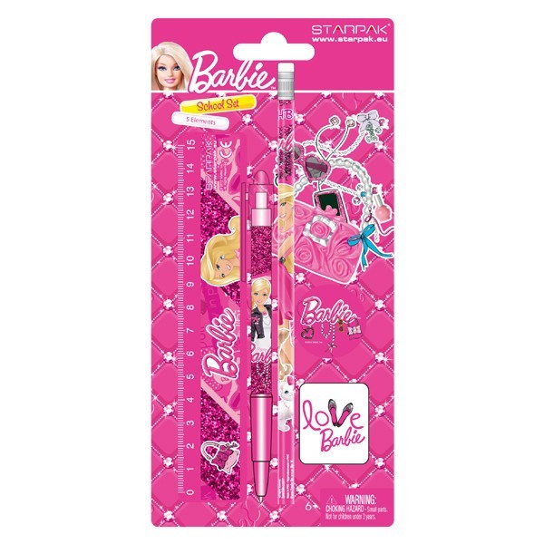 Strona główna Artykuły szkolne i piśmiennicze przybory szkolne Zestaw do szkoły Barbie Cena Netto: 4,78 zł. error_outline Produkt chwilowo niedostępny. Opis Zestaw szkolno-prezentowy składający się z: ołówka, linijki, długopisu, temperówki oraz gumki. Zdobiony wizerunkami ulubionych dziecięcych bohaterów.