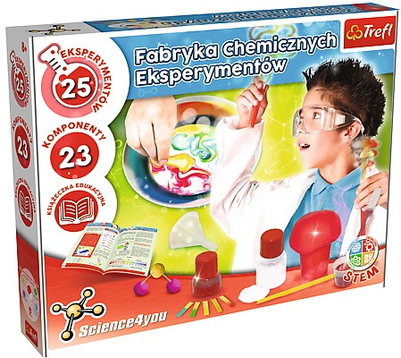 Fabryka chemicznych eksperymentów od Science4you to praktyczne utrwalenie wiedzy szkolnej! Nauka chemii poprzez śmieszne eksperymenty? Z naszym zestawem to możliwe! Dowiedz się jak zrobić zabawną eksplozję koloru poznając barwy pierwszo, drugo i trzeciorzędowe. Jak wyprodukować piękną kolumnę pianową i w prosty sposób stworzyć stalaktyty i stalagmity. Zaskocz swoich bliskich wysyłając im kolorowe tajne wiadomości. Dowiedz się czym jest napięcie powierzchniowe, co to jest osmoza i odczyn pH substancji.