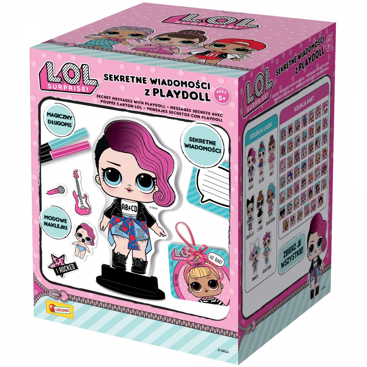 L.O.L. Surprise Sekretne wiadomości z Playdoll to produkt na uwielbianej na całym świecie licencji L.O.L., dzięki któremu dzieci mogą przesyłać sobie sekretne wiadomości, niedostępne dla oczu dorosłych! Wszystko to jest możliwe dzięki magicznym długopisom, których tusz jest widoczny jedynie pod odpowiednim oświetleniem. Każde opakowanie zawiera także kartonową L.O.L., którą dziewczynki mogą kolekcjonować.