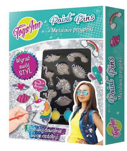 Chcesz mieć unikatowy strój? Przyozdób go przypinką własnego designu! Metalowe przypinki to zestaw 9 ozdób do własnego pomalowania. Stworzone przypinki są mocowane za pomocą agrafki. W zestawie znajduje się: 9 metalowych ozdób, 9 agrafek, dwustronnie klejąca pianka, farbki w 5 kolorach, pędzelek. Zestaw przeznaczony jest dla dzieci powyżej 6 roku życia.