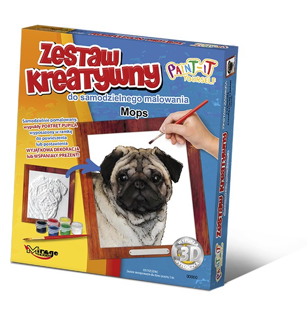 Obrazki 3D - Obrazek pupila w Zestawach Kreatywnych Mirage Hobby, to wypukła wytłoczka 3d. To również unikalna cecha tego produktu, wyróżniająca go na rynku. Ponieważ jest ona wykonana z plastiku, możliwe jest umycie obrazka ciepła wodą zmydłem i powtórne jego pomalowanie, dzięki temu można poprawiać i dopracowywać swoje dzieło do uzyskania pożądanego efektu.