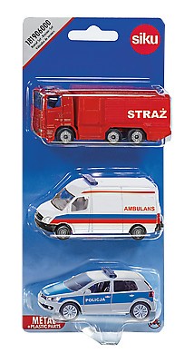 - Zestaw składa się z 3 pojazdów wykonanych z metalu i elementów z tworzywa.