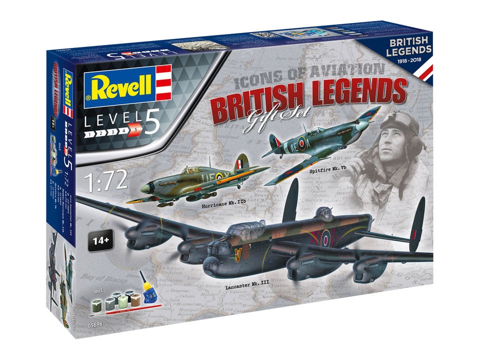 Zawiera 3 modele samolotów do sklejania malowania: Hawker Hurricane Mk.IIB, Supermarine Spitfire Mk.VB, Avro Lancaster Mk.III oraz 6 podstawowych farbek, pędzelek i klej.