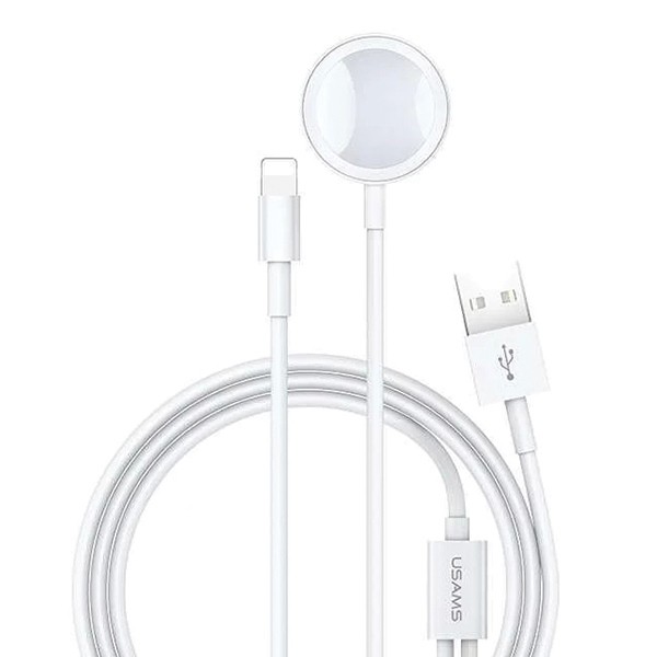 USAMS US-CC076 2w1 Kabel lightning z bezprzewodową ładowarką Apple Watch, pozwala zaoszczędzić czas, ponieważ nie trzeba zmieniać złącza i ładować urządzenia pojedynczo.