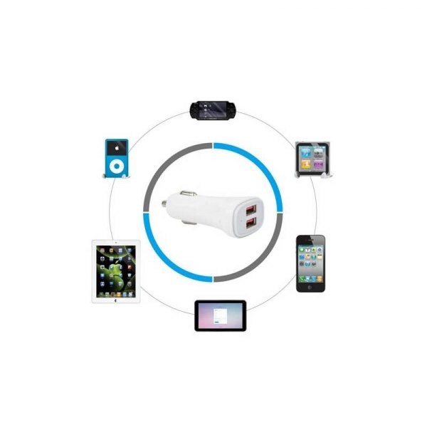 Ładowarka samochodowa 2xUSB 5V 2.4A+2.4A, 12/24V, biała