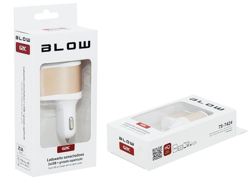Ładowarka samochodowa 2 x USB, 2,1A z gniazdem zapalniczki
