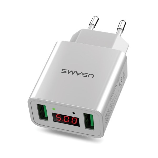 USAMS US-CC040 Dwu portowa ładowarka sieciowa USB z wyświetlaczem.