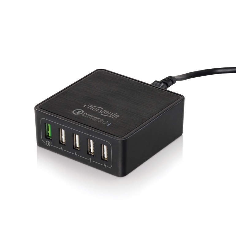 - 5-portowa szybka ładowarka USB QC 3.0 (1x port QC, 4x standardowe porty)