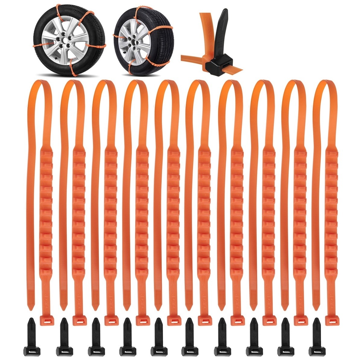 Szybkie i solidne rozwiązanie Szybki i łatwy montaż nawet w 2-3 minuty! Zakładamy po 5 opasek na każde napędzane koło. Zaplatamy lub ucinamy końcówki i gotowe! Teraz bezpiecznie ruszamy w podróż po ośnieżonej drodze. Opaski zostały wykonane z wysokiej jakości technicznego tworzywa sztucznego PA66. Jest to rewolucyjne rozwiązanie, proste oraz bardzo skuteczne.